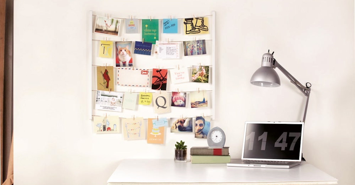 If you need a quick way to dress up your walls, try this hanging photo display! It comes with 40 clothes pins so you can hang anything from insta photos to inspirational quotes. You can even use it as a mood board with pics of your favorite travel destinations.