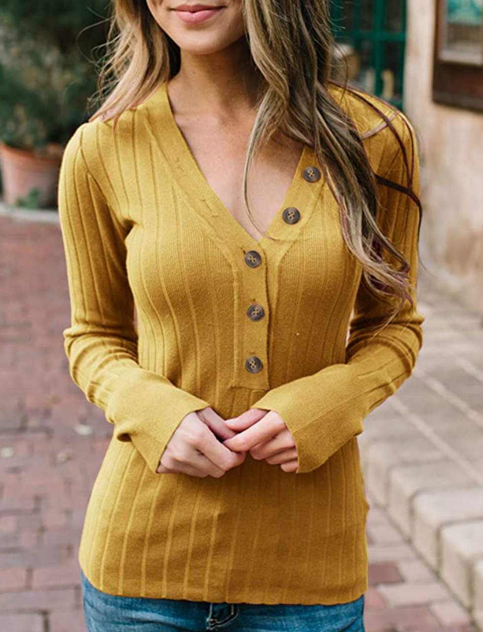 If the V-neck on this sweater is a little too deep for you, simply loop a few of the buttons up — poof! You’ve now got a sweater that’s appropriate for brunch with grandma. And once brunch is done, just undo the buttons and hit the club (but don’t forget to invite grandma — it would be rude if you didn’t.)