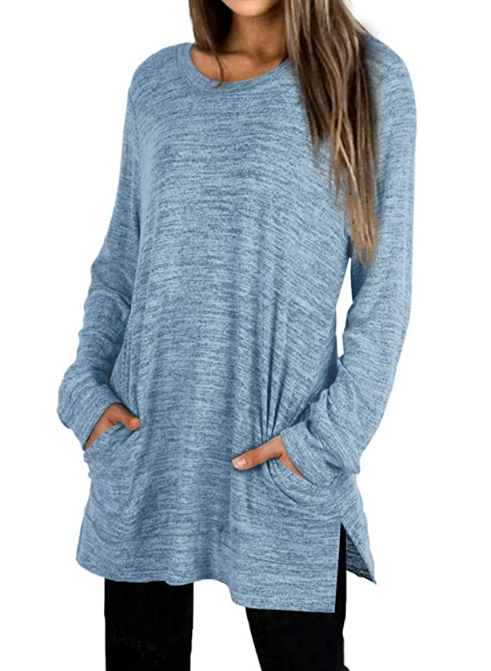 Not all tunics are created equal — this one is so, so soft, and it even has fun pockets where you can keep your hands warm. It looks great with everything from jeans to leggings, and it’s light enough to wear underneath a denim jacket or coat when the weather turns cold.