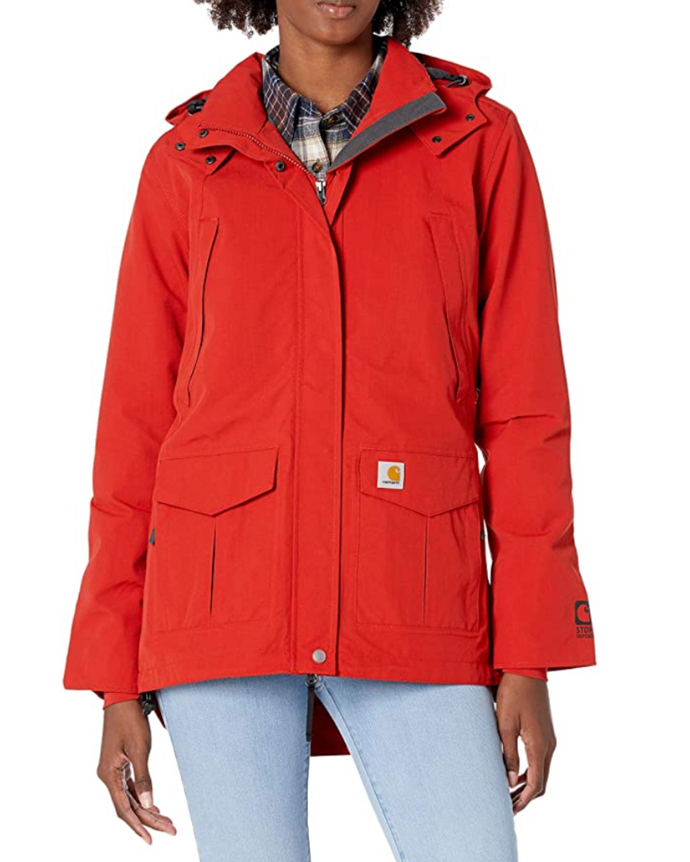 If you still need a fall jacket that can withstand cruddy weather, look no further than this one from Carhartt. It’s made with a tough nylon shell, which helps keep you dry when it’s raining outside. Plus, the mesh lining in the body helps increase airflow so that you don’t overheat.