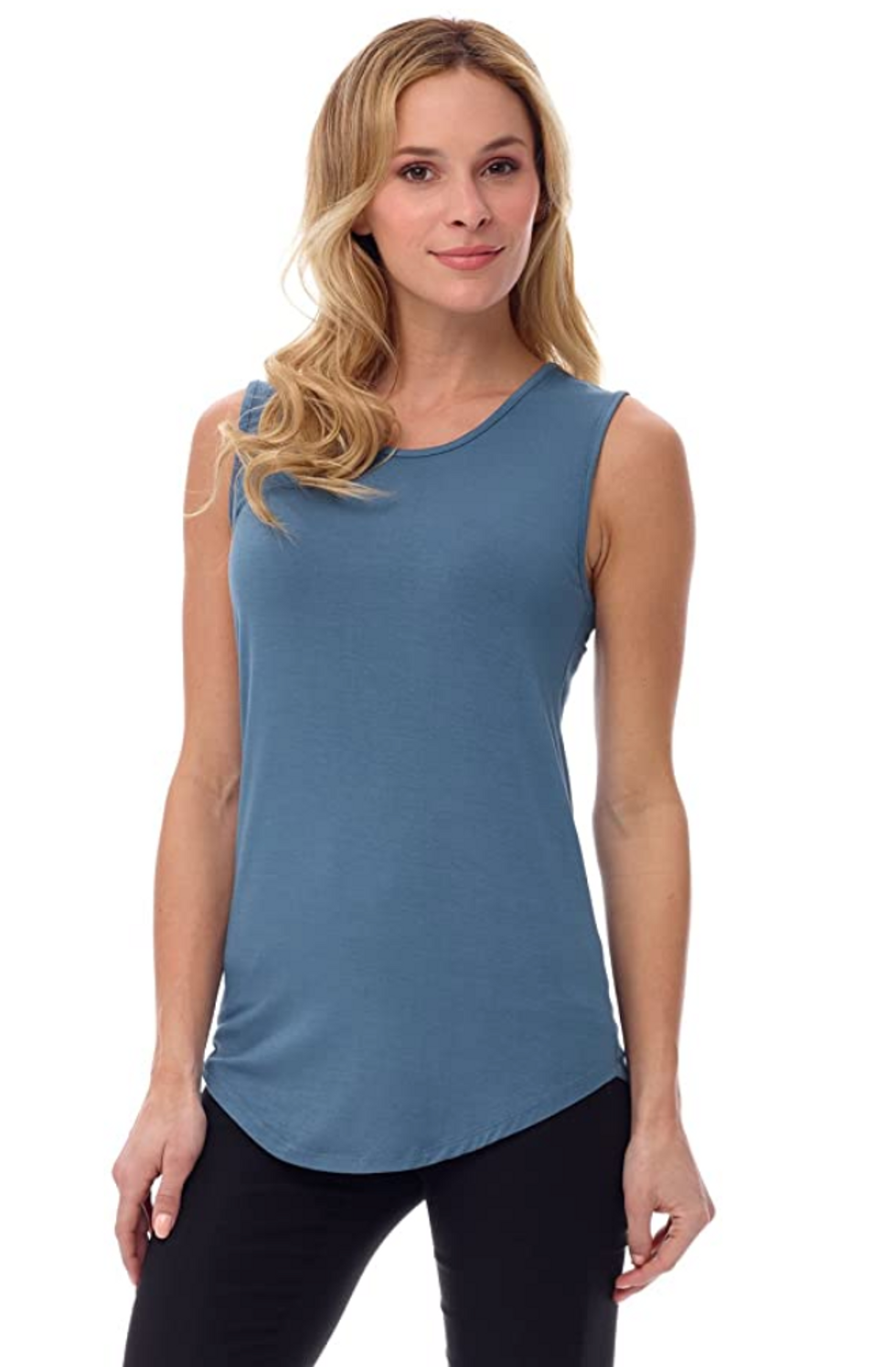 Whether you wear this tank with a cardigan or jacket is up to you — but either way, the soft spandex jersey fabric will have you feeling comfy all day long. The best part about it? You can even wear it to the gym if you need a quick workout top, as it’s light enough that you won’t be left overheating.