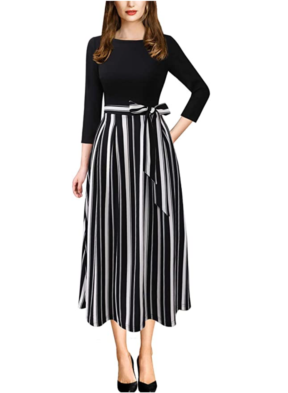 Something about this dress just screams FALL to me — but if you aren’t into stripes? It’s also available in dozens of other prints. Throw a denim jacket on top of it for a stylish date night, or even wear it underneath a cardigan when going to work.