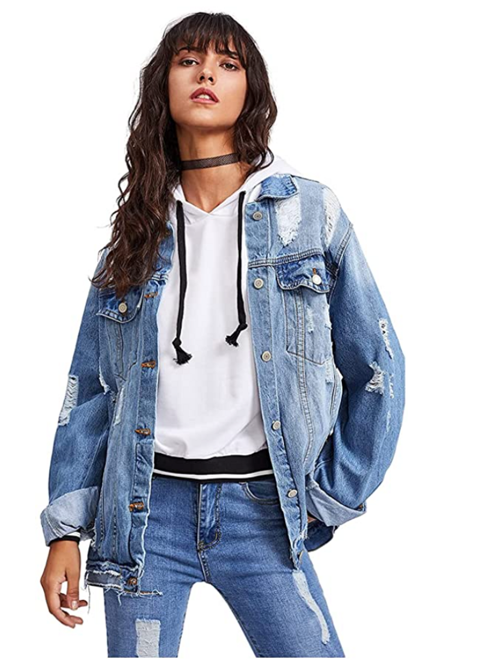 Some denim jackets are heavy — but not this one. Not only is it perfect for layering, but the distressed details along the shoulders and sleeves give it a trendy feel that’ll always stay in style.