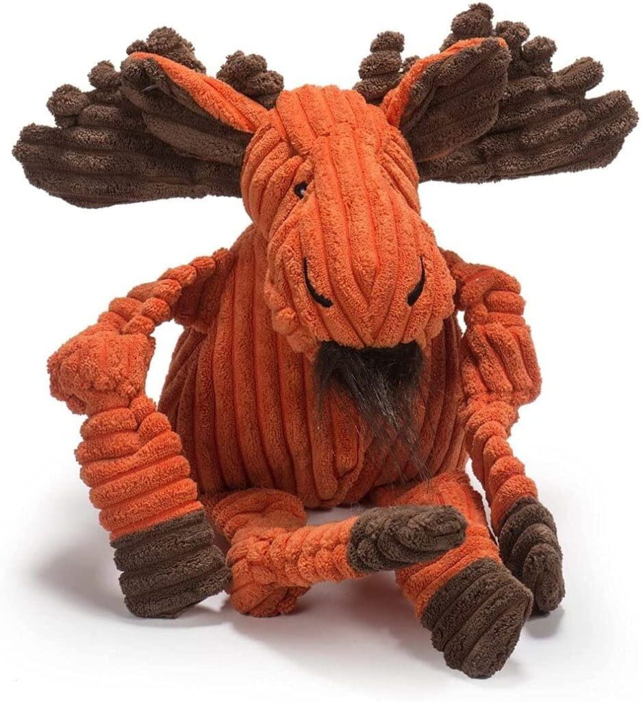 This HuggleHounds plush corduroy squeaky knottie toy that’s perfect for aggressive chewers. This toy is specifically designed and manufactured to be more durable, especially with its double-layer Tuffut Technology lining.