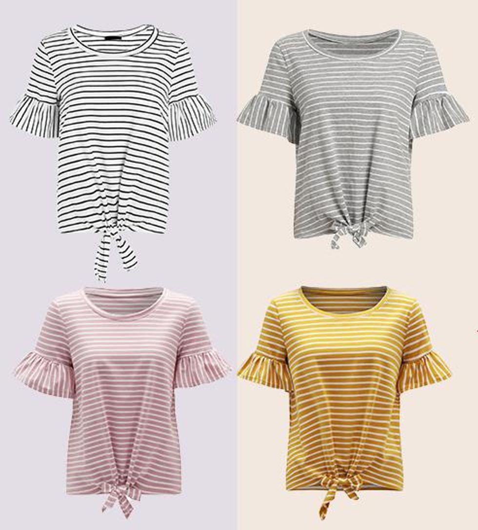 Knotted shirts are still a huge trend this spring and summer, and this Tie-Front Shirt is one of my favorites available on Amazon right now. The stripes and ruffled sleeves elevate this way above a basic tee!