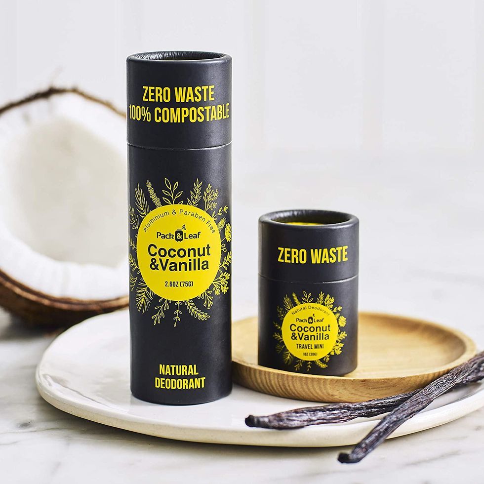 What I love about so many of the products on this list is that the manufacturers not only considered natural ingredients but zero-waste packaging, too. This natural deodorant set, which includes a full size and a travel mini, uses a gentle magnesium and baking soda formula. According to the manufacturer, one purchase will last you at least four months and the packaging is completely biodegradable as well.​