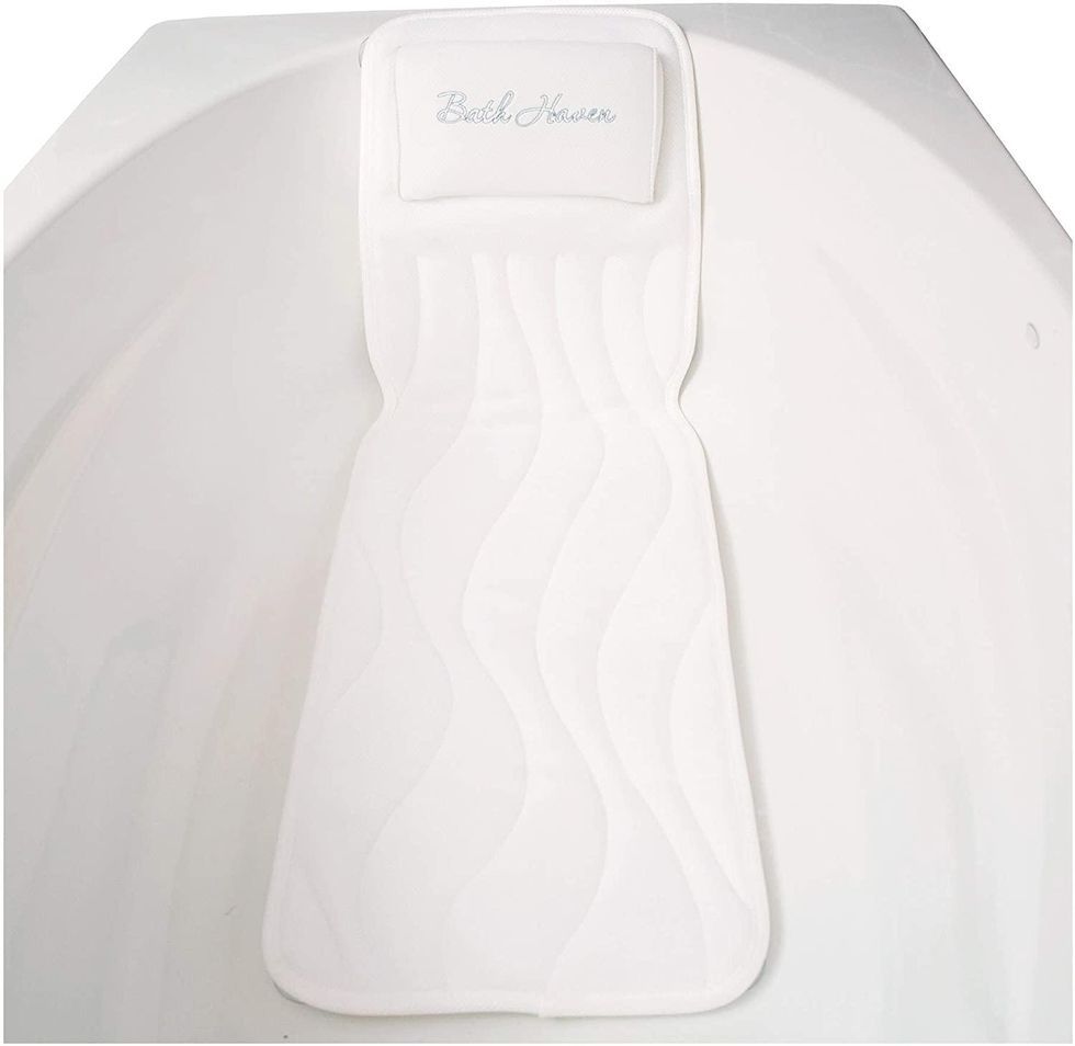 I love bath time; not showers, although I’ll take one if I need to save time. I’m talking about break-out-the-bubbles-and-the-bubbly bath time, which is why I need to step up my game and order one of these bath pillow/spa cushions for full-body comfort. Did you read that? “Full. Body. Comfort.” This cushion stays in place and extends beyond “just a bath pillow” to wrap your whole body in a cloud of softness.