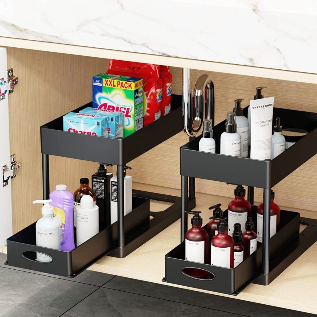 These organizers are great because they can truly be used for anything and everything. Throw them under your sink for toiletries. Or maybe you need to store your cleaning products. Heck, maybe you need to clean up your medicine cabinet. Whatever it may be, these do the job.