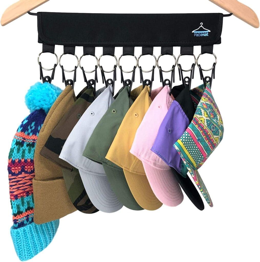 I have had this organizer sitting in my cart for months now to surprise my boyfriend. He has an absurd amount of hats sitting on his dresser, which is just not pleasant to look at and takes up too much space. This thing holds nine hats—ranging from baseball to beanies.