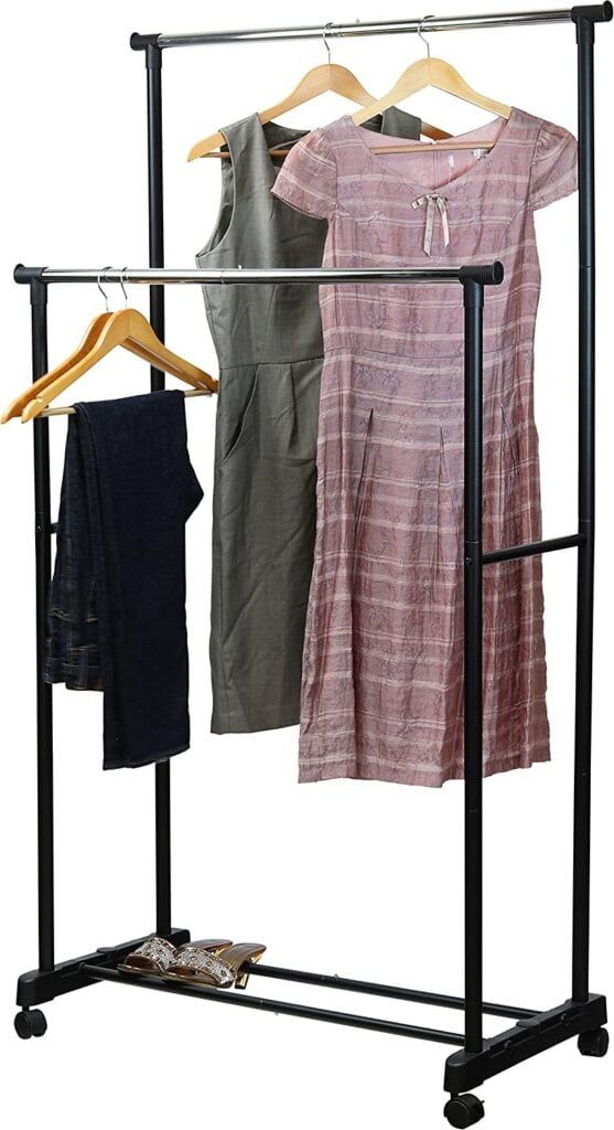 I love using a rolling rack because it makes me feel like I’m shopping when in reality, I am just browsing my own closet. The double-rod design can accommodate double the number of clothes you may be used to, and the wheels make it super easy to move around if you’re constantly shifting things.