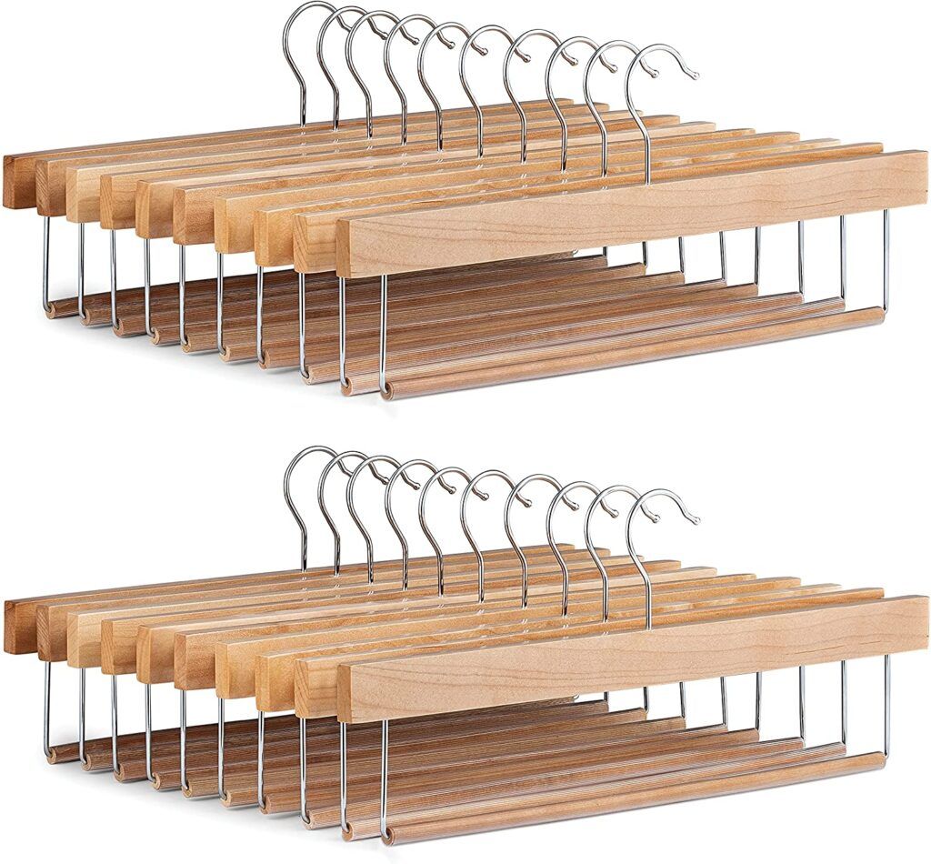 While you could throw all of your jeans and pants into a dresser, it’s not the ideal setup when you’re low on space. That’s why I recommend maximizing your space with these hangers. They can hold slacks, jeans, towels, linens, and more.