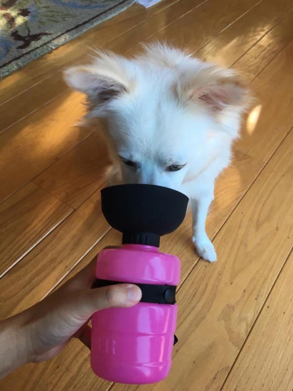 After trying to give my dog Rosie a drink of water from my water bottle (and ending up with wet shoes and no water left for me), I went to Amazon for a solution. This Water Bottle for Dogs has a genius design that lets you squeeze water into the attached cup, making it easy for dogs to drink without wasting water or making a mess.