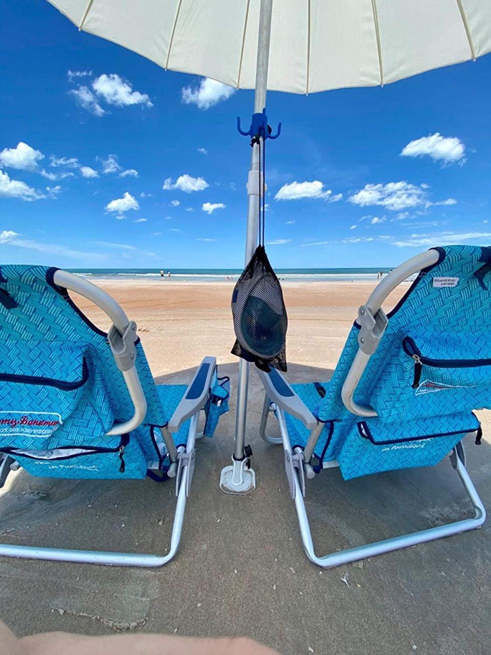 One of my favorite new vacation gadgets! This Beach Umbrella Hook attaches to most umbrella poles to provide a handy spot for hanging towels, bags, keys, and other necessities. One Amazon customer writes, “One of the best features of this little gadget is that if it is placed high on the umbrella post, it is completely invisible to anyone walking past your umbrella.”
