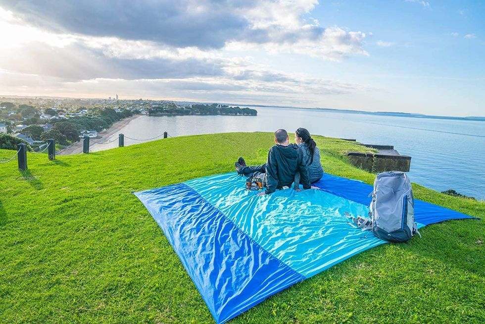This Extra-Large Beach Blanket Folds Into a Hand-Sized Pouch