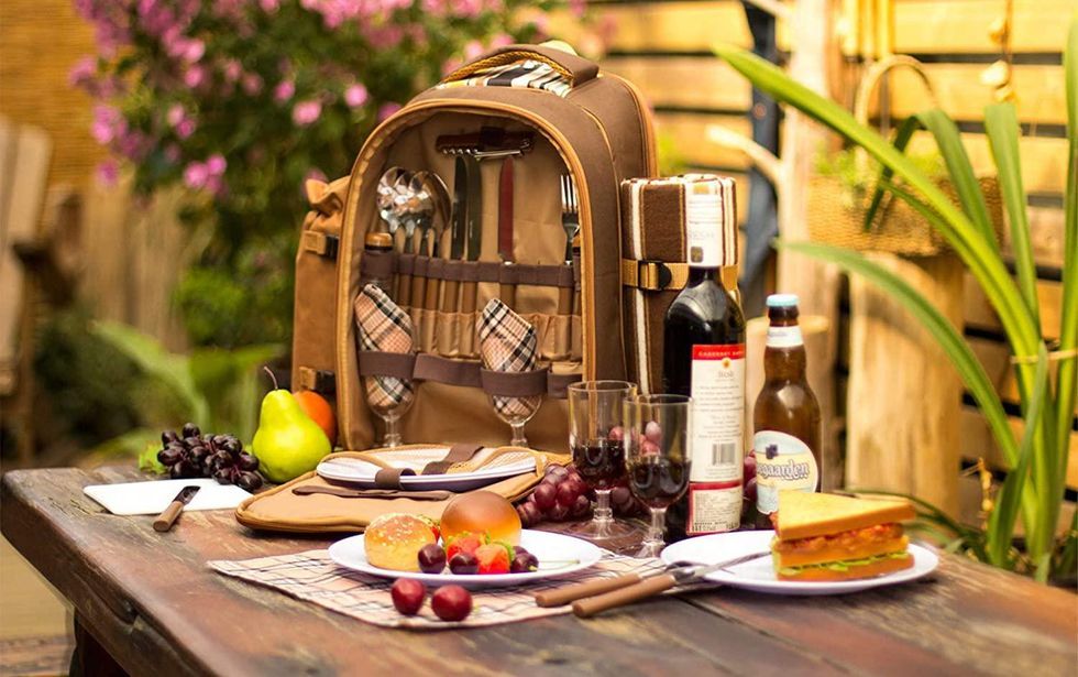 I’m sending a link to this Picnic Backpack to my husband as a hint for my next birthday. The delightful set includes everything needed for a picnic, from the blanket to silverware to wine glasses. It even includes tiny salt and pepper shakers!