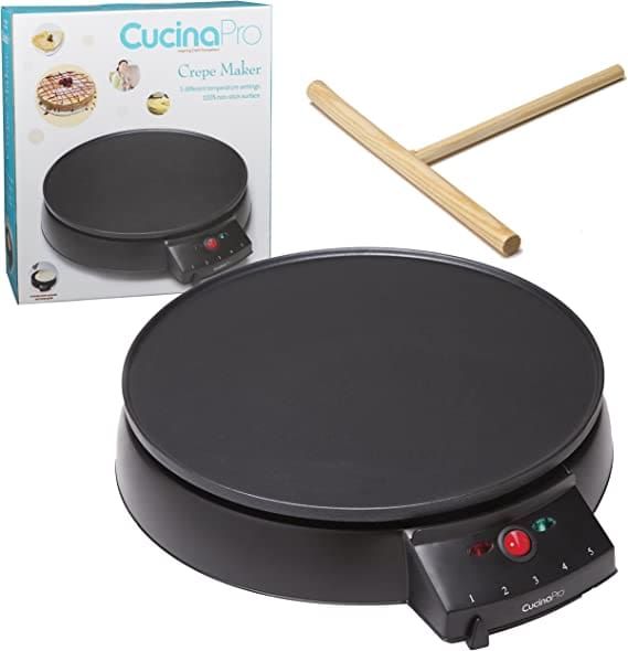 Not satisfied with regular pancakes? Then upgrade to this fun crepe maker from CucinaPro. It features a 12-inch non-stick electric griddle and even comes with a batter spreader for easy use. Choose from five temperature presets and you’ll appreciate the easy-to-understand indicator lights that let you know when the griddle is ready to use and when the crepes are done.
