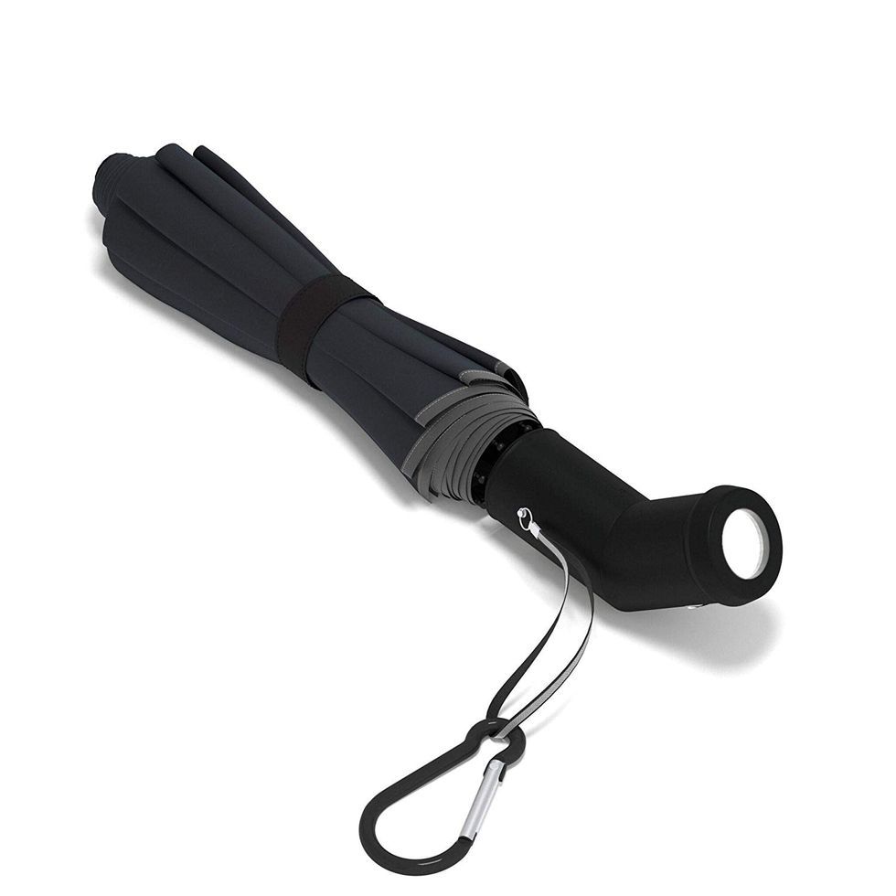 How smart is this thing? Of course you could use a handy LED flashlight right on the end of your umbrella! The light at the end of the handle can be angled with a simple twist, so you don’t have to tip the umbrella and get rained on when you need light in front of you rather than straight down.