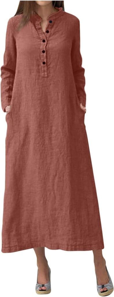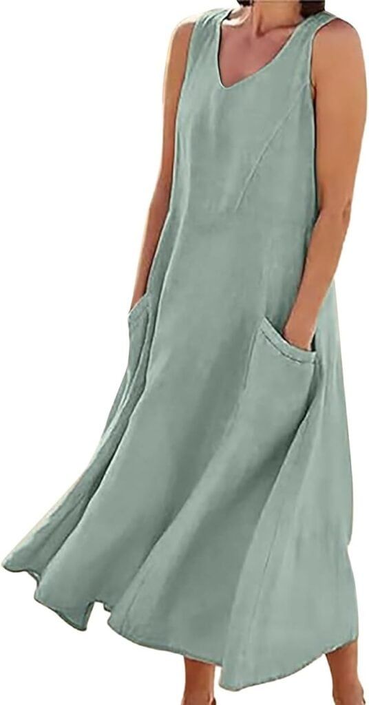 Refresh your spring wardrobe with our breezy cotton-linen A-line dress, where lightweight natural fibers keep you cool through warming days. The flattering sleeveless silhouette skims your curves while practical pockets add functional charm to elegant simplicity. Available in an impressive rainbow of 30 colors and inclusive sizing up to 5XL, this versatile piece transitions effortlessly from casual daytime adventures to evening gatherings with just a change of accessories.