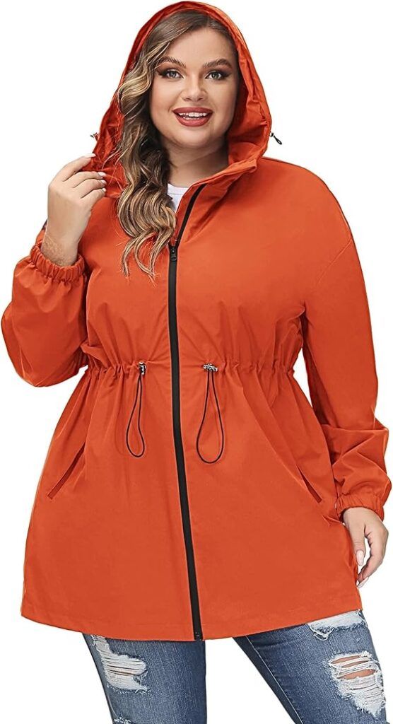 With warmer temps, spring also brings ample rain. April showers, anyone??? To get you through the drizzles, here’s a lightweight, waterproof rain jacket that serves precisely this purpose. It’s stylish with a feminine cut and has an adjustable storm hood and drawstring waist to ensure a snug fit. It has two front flap pockets for safekeeping your essentials, and it comes in up to size 28 plus.
