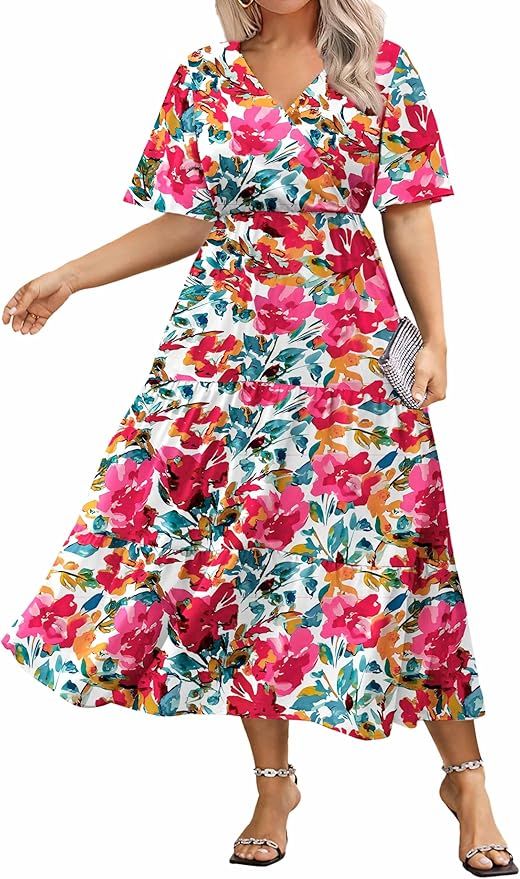 Embrace effortless elegance in this stunning floral ruffled dress, available up to size 28 plus. The vibrant floral print and playful ruffles create a romantic and flattering silhouette. Perfect for any occasion, from casual outings to special events, this dress offers both style and comfort. The lightweight fabric drapes beautifully, while the thoughtful design ensures a comfortable and confident fit for all body types. Make a statement with this versatile and chic addition to your wardrobe.