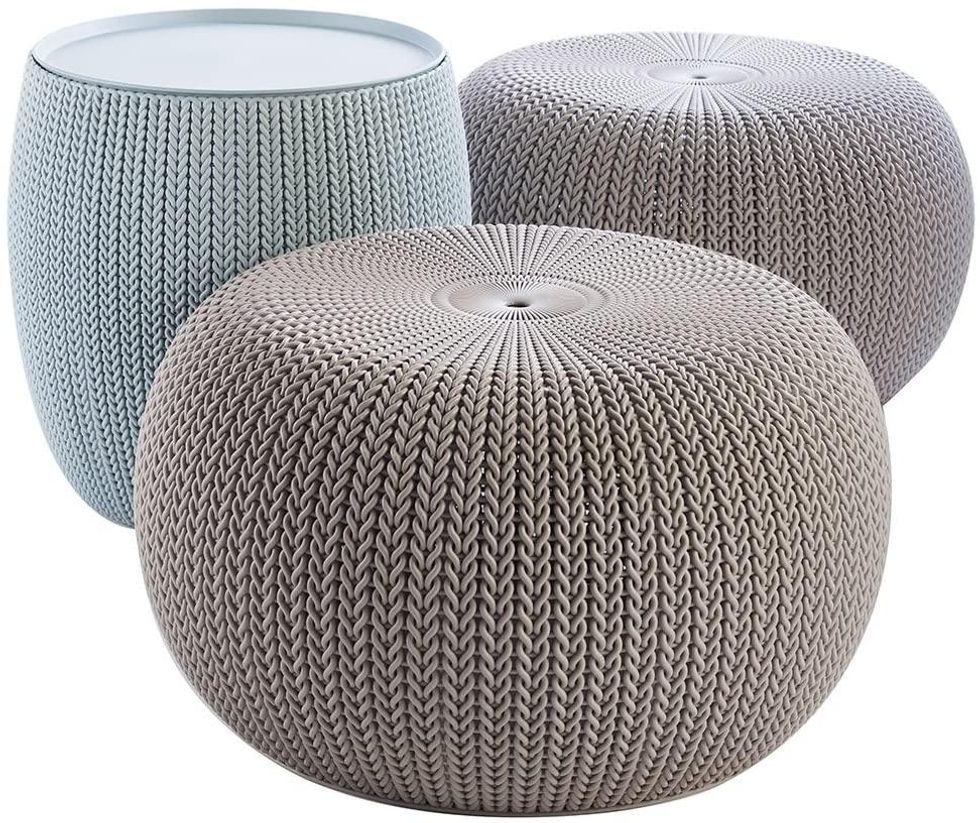 3. Keter Urban Knit Pouf Ottoman Set of 2 with Storage Table for Patio and Room Décor