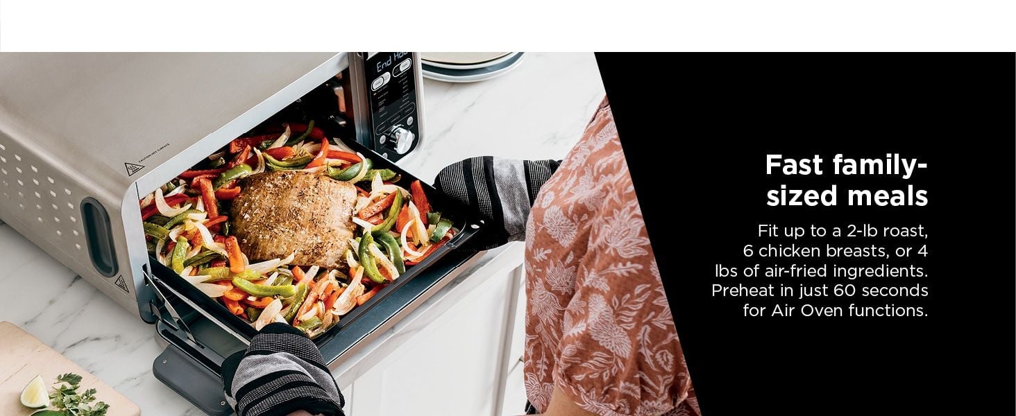 - Family-Sized Capacity: Fit up to 6 chicken breasts, cook a 2-lb roast, or air fry up to 4 lbs of ingredients in this roomy oven.