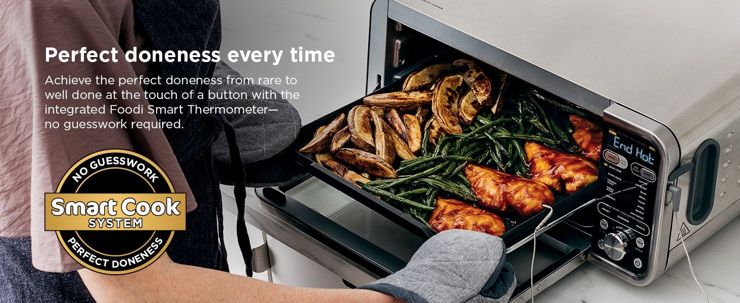 - Smart Cook System: No more guesswork! The integrated Foodi Smart Thermometer ensures the perfect doneness of your food, from rare to well done. Just sit back, relax, and let the oven do the work.