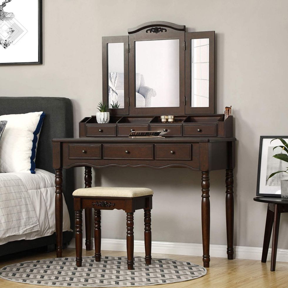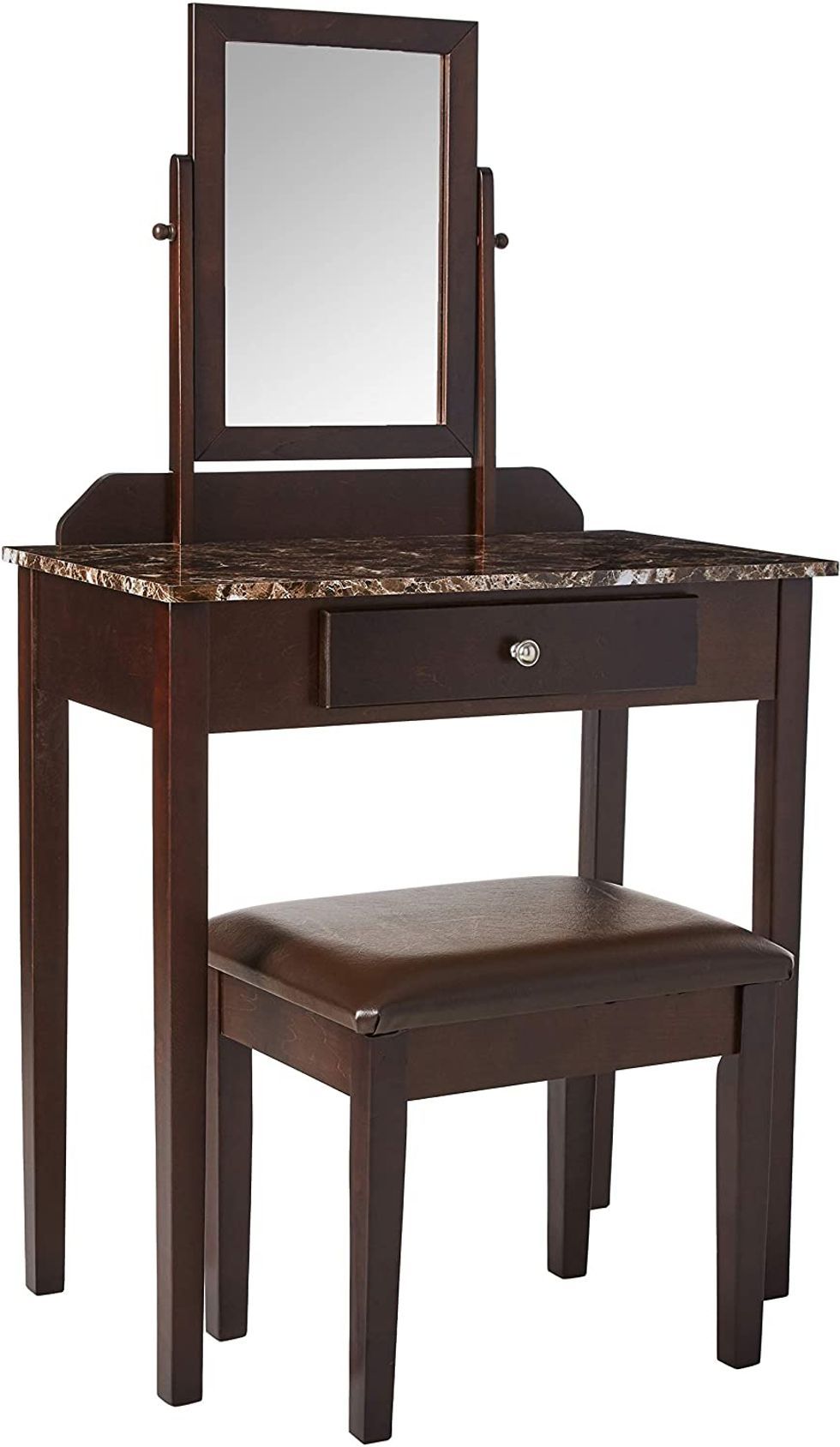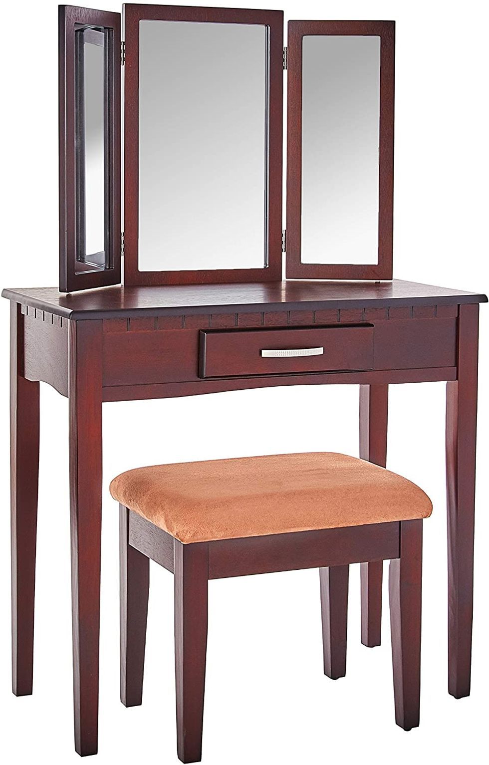 So we’ve put together a list of Amazon’s best vanity sets for your perusal. You don’t have to go to a furniture store to pick out your next set, especially not in today’s climate! Just scroll down the list until you see something that’ll fit your space perfectly. With a makeup table to hold all of your designated “getting ready” materials, you’ll be up and at ’em in no time. Enjoy!