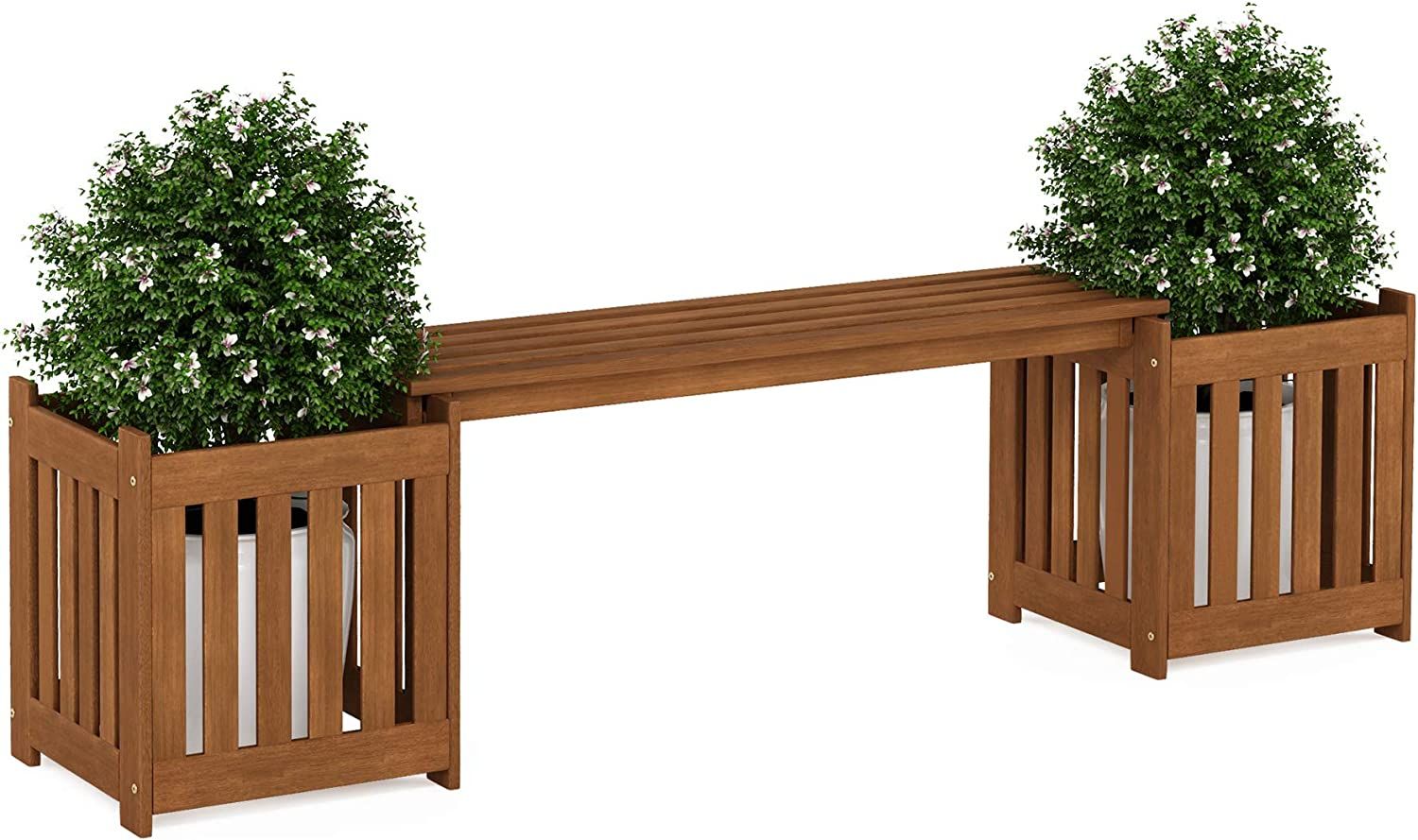 Is it a flowerbox with a seat or a seat with two flowerboxes? Either way, you’re going to love this planter/bench combo. Made from dark red meranti wood treated with teak oil, it’s water- and weatherproof made to last a long time. A reviewer who purchased two of these called them “easy to assemble, low cost and high value.”