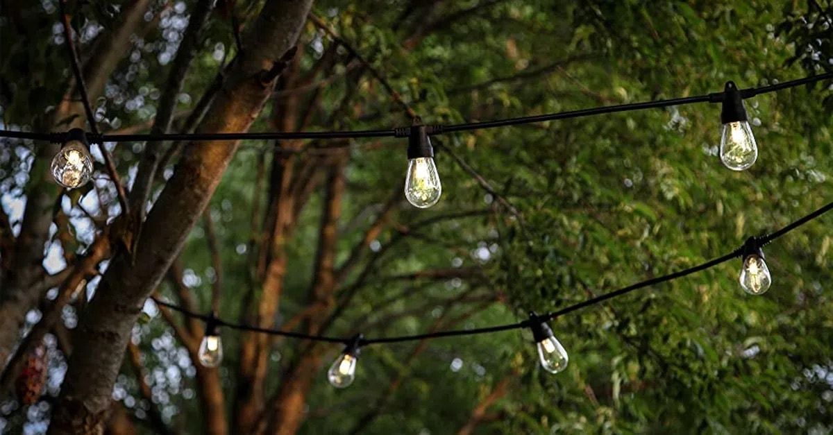 String lights are one of my favorite outdoor accessories because they can transform a space for as little as $32 (and, right now, these are 33% off!). These are commercial-grade and waterproof with cool Edison bulbs that are shatterproof and give off soft white light. A 27-ft. string should give you plenty of length to hang them!