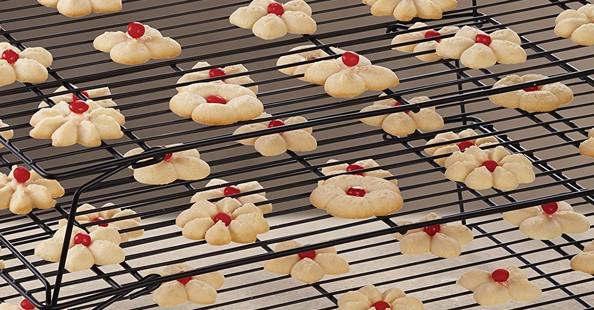 This listing is for a set of three racks. They’re great for cooling biscuits, cookies, or loaves of bread. I also use them for draining oil off of fried goods.