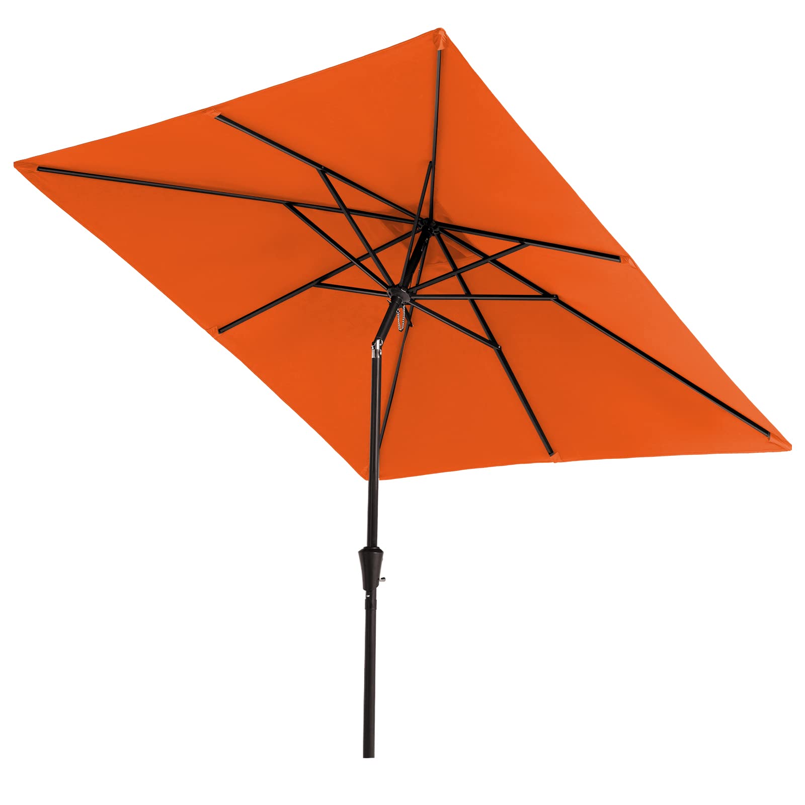Transform your patio, deck, or yard into a stylish oasis with the FLAME&SHADE 11ft Outdoor Market Patio Table Umbrella. With 8 rectangular ribs and a heavy-duty aluminum pole, this large 11-foot parasol is designed for long-lasting use. The umbrella features a smooth crank wind for easy operation and a 2-position push-button tilting mechanism for greater shade all day long. Made with high-quality 200gsm outside grade water-resistant solution-dyed polyester fabric for extra UV protection, this umbrella is built to withstand wind, sun, and rain. Don’t forget to grab an umbrella stand that complements this rugged beauty (sold separately)! Keep the sun at bay with style – order your outdoor market umbrella now!