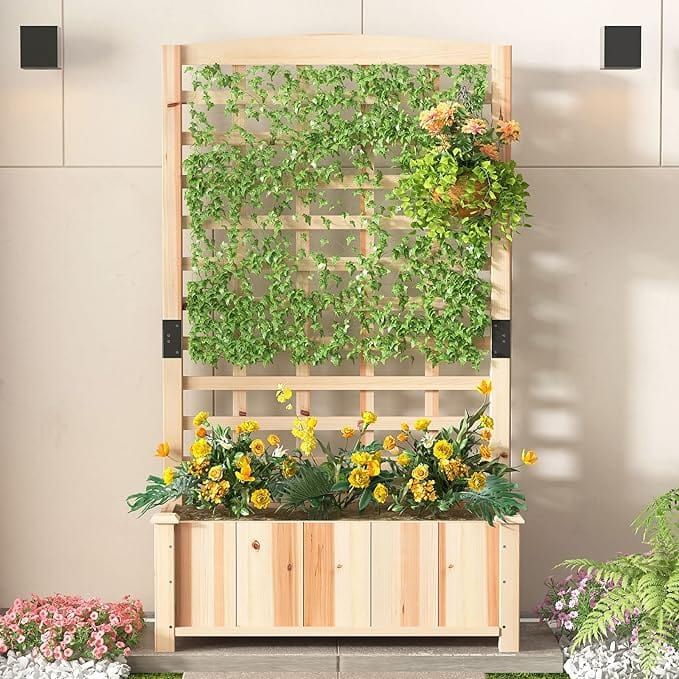 This garden bed is unique in its design. It has your traditional bed, ready for plating the prettiest of flowers. But its raised design is ready to house the tallest of your blooming plants. Great for ivies or hanging small baskets, this flower bed is ready for your creative, gardening print.