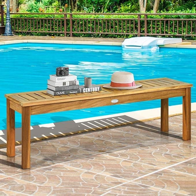 This Tangkula outdoor bench is such a versatile piece of outdoor furniture. You can place it by the pool to sit by and sunbathe, especially with the right decorative pillows, creating the perfect little space to relax after a long day. Or use it as a side table to hold your towels or those cold drinks you’ll indulge.